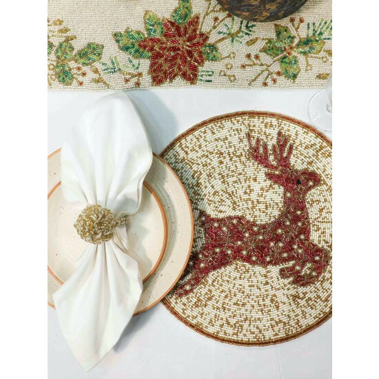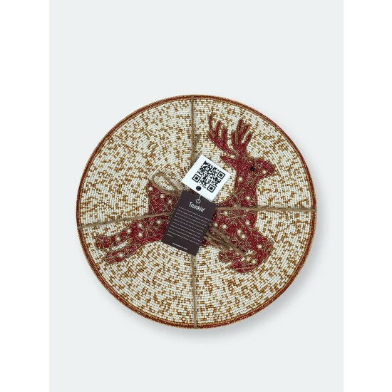 One of the most visually stunning forms of Indian artistry is traditional bead embroidery. These showpieces are intricately hand embroidered using vividly hued glass beads. A generous 13.5 inches in diameter and weighing nearly 1 pouFounded in 2020, with the core mission to help artisans across india survive the disruption in their livelihood caused by the pandemic trunkin’ usa, based out of lovely new jersey brings these heirloom quality tabletop goods directly to consumers across north america while giving back to the artisan community. Our glass bead embroidered placemats are intricately hand embroidered using vividly hued glass beads. One of the most visually stunning forms of indian artistry is traditional bead embroidery. Our embroidered placemats are available in a stunning pallet of colors, designs and shapes options. They will add a festive touch to any holiday or celebration table and make you the envy of your guests., these Placemats, Chargers are carefully finish with a dupion silk & satin back to protect your table top finish. They will add a festive touch to any holiday or celebration table and make you the envy of your guests!Our embroidered Placemats, Chargers are available in a stunning pallet of colors, designs and shapes options.