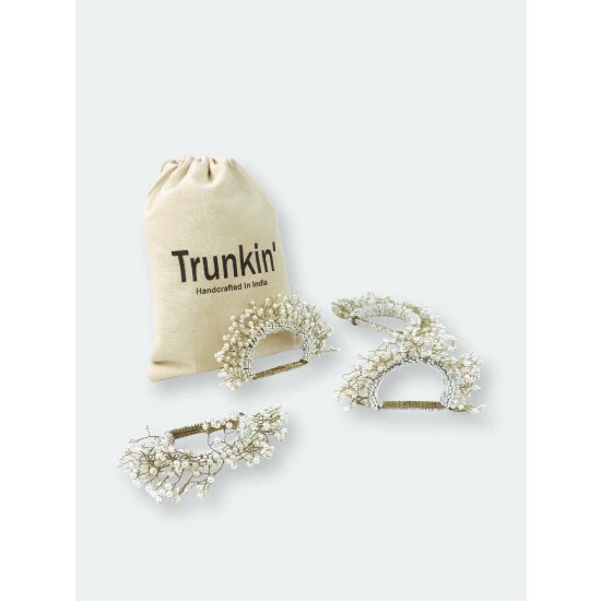 Founded in 2020, with the core mission to help artisans across india survive the disruption in their livelihood caused by the pandemic trunkin’ usa, based out of lovely new jersey brings these heirloom quality tabletop goods directly to consumers across north america while giving back to the artisan community. Our prime source for fine quality napkin rings is a rural village near the ganga river. Renowned for their beadwork, they use a combination of glass, metal and wooden beads along with an array of bells, shells and rhinestones to produce some the finest goods on the market. Wonderfully whimsical in designs and surprisingly hefty in weight, we like to think of them as jewelery for your napkins.