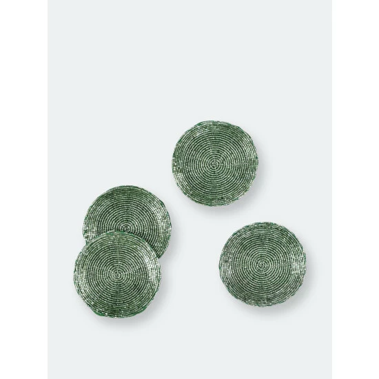Founded in 2020, with the core mission to help artisans across india survive the disruption in their livelihood caused by the pandemic trunkin’ usa, based out of lovely new jersey brings these heirloom quality tabletop goods directly to consumers across north america while giving back to the artisan community. Our glass bead are carefully hand embroidered using quality beads by skilled crafts people. They measure an ample 4 inches and are finished with a dupion silk; satin backing. Sold as a set of four, you will be proud to display our coasters in your home.