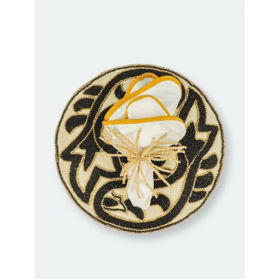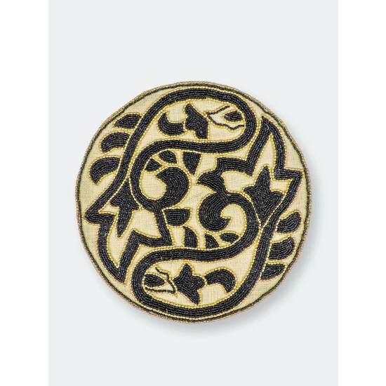 One of the most visually stunning forms of indian artistry is traditional bead embroidery. These showpieces are intricately hand embroidered using vividly hued glass beads. A generous 14 inches in diameter and weighing nearly 1 pound each, these placemats, chargers are carefully finish with a dupion silk & satin back to protect your table top finish. They will add a festive touch to any holiday or celebration table and make you the envy of your guests!