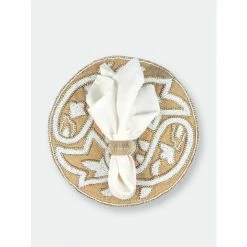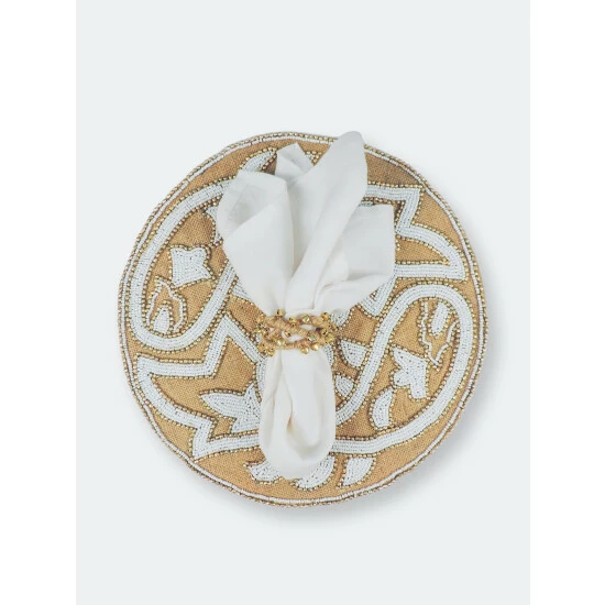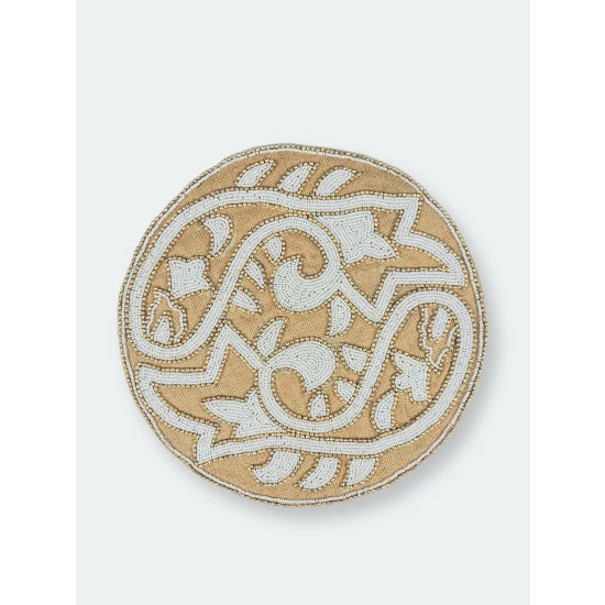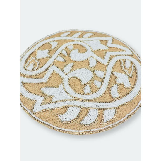 One of the most visually stunning forms of indian artistry is traditional bead embroidery. These showpieces are intricately hand embroidered using vividly hued glass beads. A generous 14 inches in diameter and weighing nearly 1 pound each, these placemats, chargers are carefully finish with a dupion silk & satin back to protect your table top finish. They will add a festive touch to any holiday or celebration table and make you the envy of your guests!