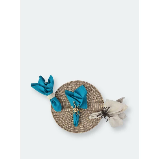 One of the most visually stunning forms of indian artistry is traditional bead embroidery. These showpieces are intricately hand embroidered using vividly hued glass beads. A generous 12″X18″ rectangle and weighing over 1 1/4 pounds each, these placemats are carefully finish with a dupion silk & satin back to protect your table top finish. They will add a festive touch to any holiday or celebration table and make you the envy of your guests!.