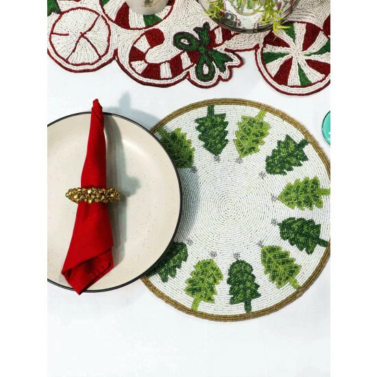One of the most visually stunning forms of Indian artistry is traditional bead embroidery. These showpieces are intricately hand embroidered using vividly hued glass beads. A generous 13.5 inches in diameter and weighing nearly 1 pound each, these Placemats, Chargers are carefully finish with a dupion silk & satin back to protect your table top finish. They will add a festive touch to any holiday or celebration table and make you the envy of your guests!Our embroidered Placemats, Chargers are available in a stunning pallet of colors, designs and shapes options.