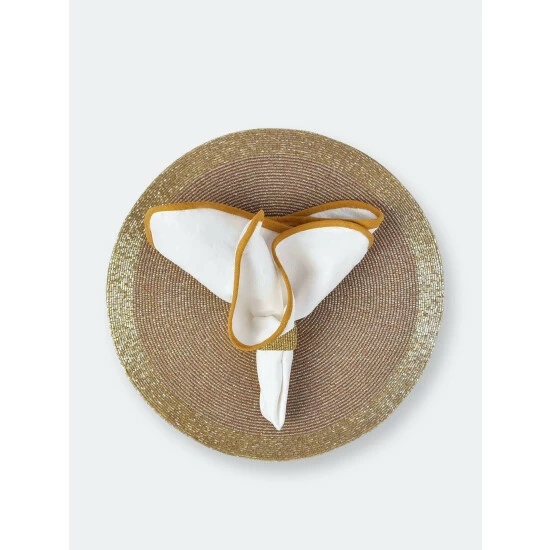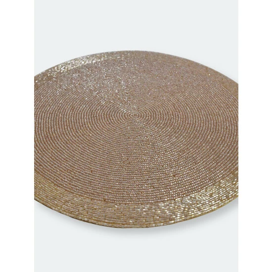 One of the most visually stunning forms of indian artistry is traditional bead embroidery. These showpieces are intricately hand embroidered using vividly hued glass beads. A generous 14 inches in diameter, these placemats are carefully finish with a dupion silk & satin back to protect your table top finish. They will add a festive touch to any holiday or celebration table and make you the envy of your guests!