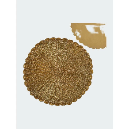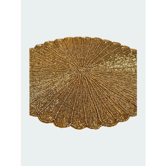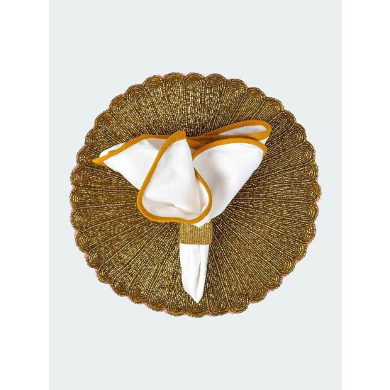 One of the most visually stunning forms of indian artistry is traditional bead embroidery. These showpieces are intricately hand embroidered using vividly hued glass beads. A generous 13.5 inches in diameter, these placemats are carefully finish with a dupion silk & satin back to protect your table top finish. They will add a festive touch to any holiday or celebration table and make you the envy of your guests!