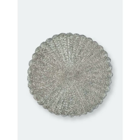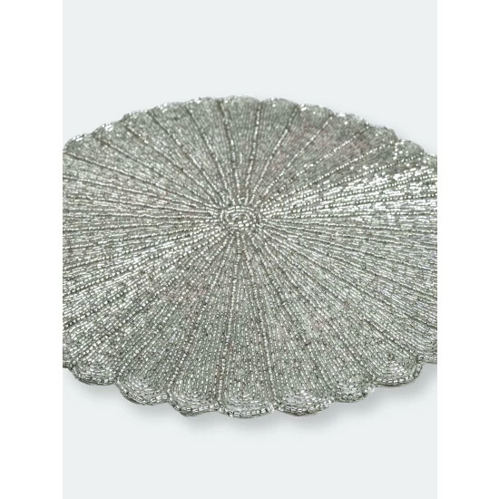 One of the most visually stunning forms of indian artistry is traditional bead embroidery. These showpieces are intricately hand embroidered using vividly hued glass beads. A generous 13.5 inches in diameter, these placemats are carefully finish with a dupion silk & satin back to protect your table top finish. They will add a festive touch to any holiday or celebration table and make you the envy of your guests!