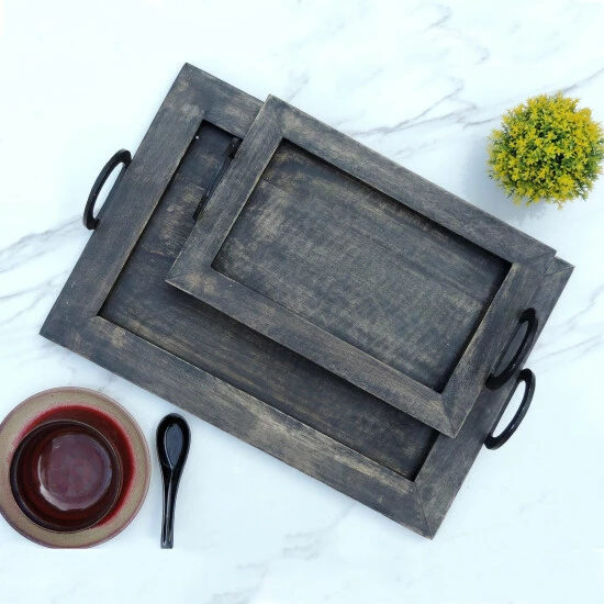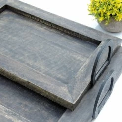 The nested serving trays are handcrafted from natural and sustainable wood.Perfect to carry drinks and snacks to where the party is! These trays are rustic yet refined in design and will add an organic touch of warmth to any room.