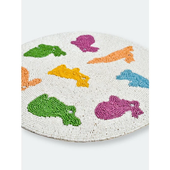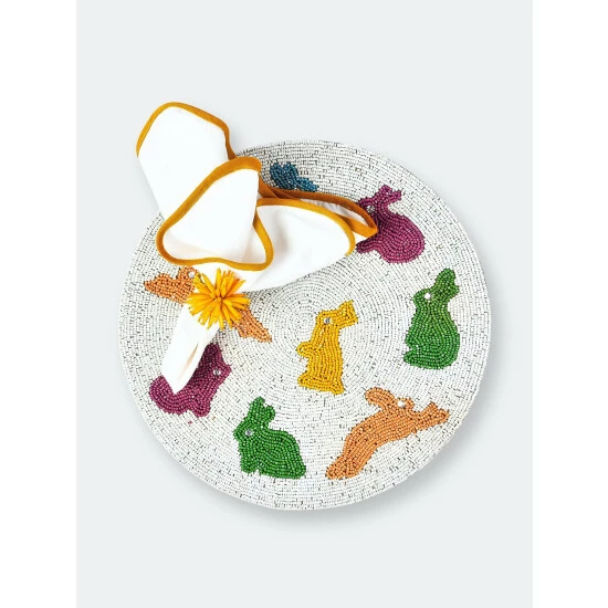 One of the most visually stunning forms of Indian artistry is traditional bead embroidery. These showpieces are intricately hand embroidered using vividly hued glass beads. A generous 14 inches and weighing over 1 1/4 pounds each, these Placemats are carefully finish with a dupion silk & satin back to protect your table top finish. They will add a festive touch to any holiday or celebration table and make you the envy of your guests!.Our embroidered Placemats are available in a stunning pallet of colors, designs and shapes options.