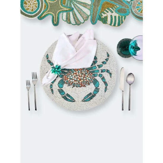 One of the most visually stunning forms of indian artistry is traditional bead embroidery. These showpieces are intricately hand embroidered using vividly hued glass beads. A generous 15 inches in diameter and weighing well over a pound each, these placemats are carefully finish with a dupion silk & satin back to protect your table top finish. They will add a festive touch to any holiday or celebration table and make you the envy of your guests!
