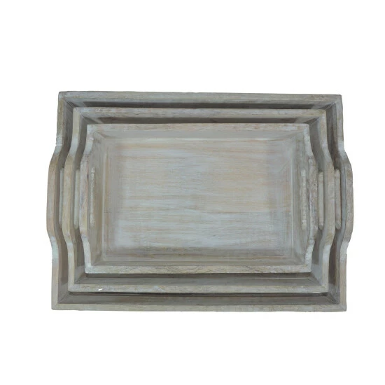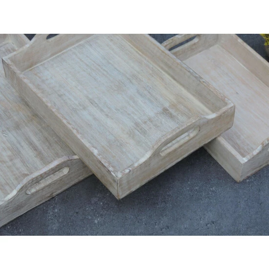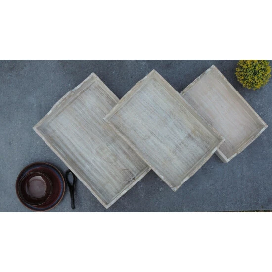 The nested serving trays are handcrafted from natural and sustainable wood. Perfect to carry drinks and snacks to where the party is! These trays are rustic yet refined in design and will add an organic touch of warmth to any room.