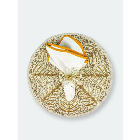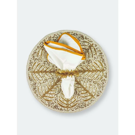 One of the most visually stunning forms of Indian artistry is traditional bead embroidery. These showpieces are intricately hand embroidered using vividly hued glass beads. A generous 14 inches in diameter and weighing 1 pound each, these Placemats, Chargers are carefully finish with a dupion silk & satin back to protect your table top finish. They will add a festive touch to any holiday or celebration table and make you the envy of your guests!Our embroidered Placemats, Chargers are available in a stunning pallet of colors, designs and shapes options.