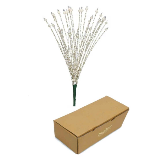 The handcrafted beaded picks will add a lavish touch to any arrangement. Each pick is teeming with stems and adorned with gorgeous beads. Our picks measure a lush 21″ high and 12″ wide.
